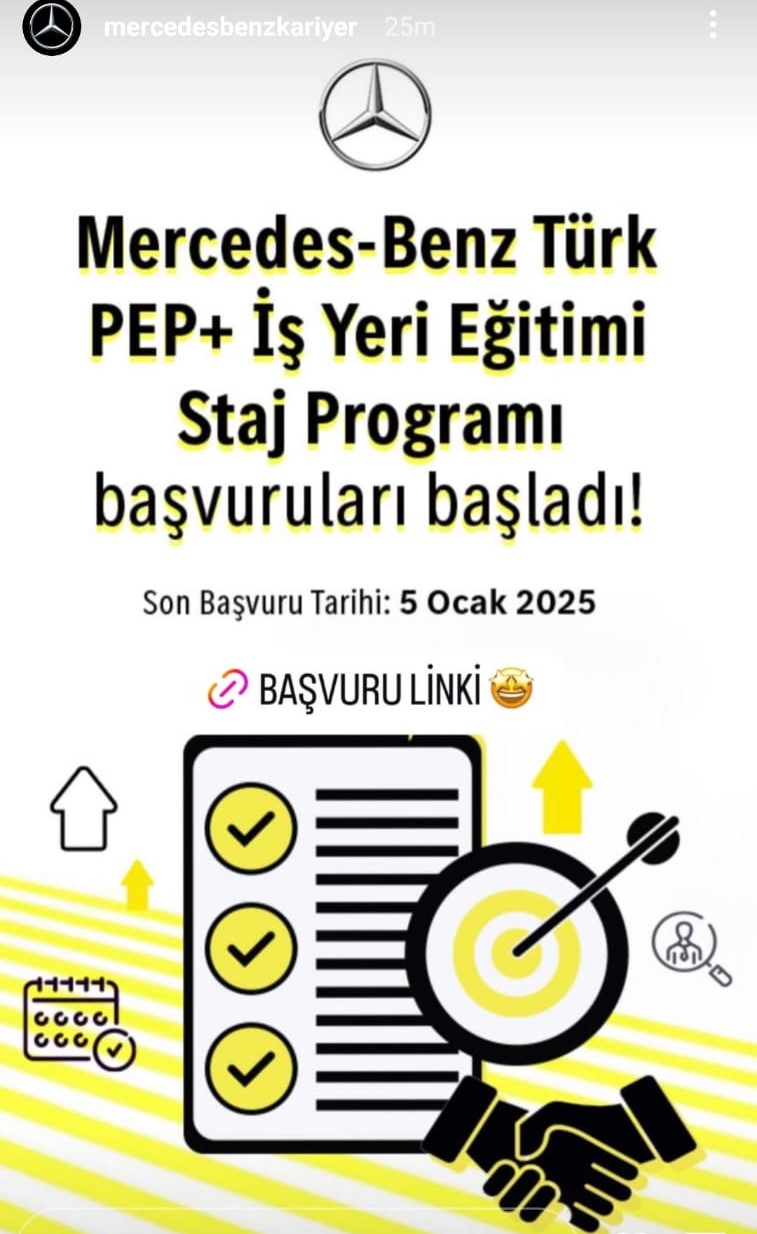 Mercedes-Benz Türk bünyesinde, hafif, orta ve ağır sınıf kamyon ve çekici üretimi yapılan Aksaray fabrikasında görevlendirilmek üzere, projelerde aktif rol alacak öğrenciler aranmaktadır.
